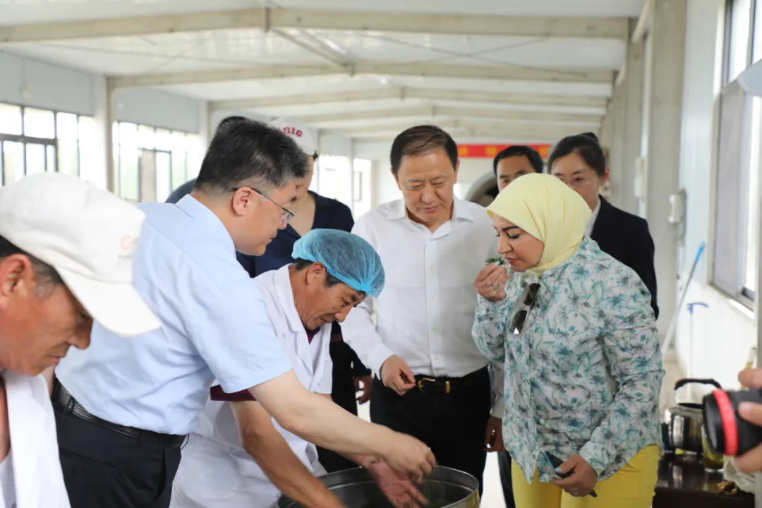 5月27日,日照市外辦黨組書記、主任謝霽曉,日照報業(yè)集團(tuán)總經(jīng)理趙慶江等一行陪同埃及主流媒體代表團(tuán)一行到瀚林春有機(jī)茶博園考察。
